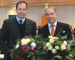aus Dülmen ist neuer Präsident des Landesverbands Gartenbau Westfalen-Lippe. Das entschieden die Teilnehmer der Mitgliederversammlung in Lünen am 30. November mehrheitlich. Der 52-jährige Gartenbautechniker war bisher Vizepräsident und ist bereits seit 1985 ehrenamtlich aktiv. Unter anderem war er 1. Vorsitzender des Landesverbands Bund deutscher Baumschulen (BdB) Westfalen-Lippe, in dessen Vorstand er bis heute tätig ist. Sein beliebter und erfolgreich agierender Vorgänger Heinz Herker (r.) aus Bochum wurde mit stehenden Ovationen verabschiedet und einstimmig zum Ehrenpräsidenten des Verbands gewählt.