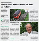 Enten können ganz unterschiedliche Farben haben. Auch Zeitungsenten kommen manchmal ganz schön bunt daher. Sollten Sie zum Beispiel nach diesem jüngst aufgetauchten Textfindling rot sehen und von der Angst befallen werden, in einer talwärts rasenden Zahnradbahn zu sitzen, können Sie sich jetzt wieder entspannen: Da ist dem Autor wohl nur die Phantasie durchgegangen. Die Rahmenbedingungen für den GaLaBau sind nach wie vor nicht einfach – so hat es der BGL-Präsident auf der besagten Veranstaltung auch gesagt – aber von Talfahrt kann nun wirklich keine Rede sein. Nehmen Sie die Illustration des Beitrags denn doch einfach als Urlaubstipp und stellen Sie die Zeichen auf Grün für einen erholsamen Gebirgstripp. tw
