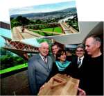 Eine markante Fachwerkkonstruktion aus heimischem Holz soll ab 2011 Blickfang für die Bundesgartenschau in Koblenz werden. Das 400000 € teure Bauwerk wird ab Mitte des Jahres am Hang oberhalb der Rheinstadt begonnen und soll im kommenden Jahr den BuGa-Besuchern einen Blick auf den Rhein, die Mosel, die Stadt, die Gartenschau und weit in die umliegende Landschaft bieten. Am 19. Januar präsentierten die rheinland-pfälzische Umweltministerin Margit Conrad, Innenstaatssekretär Roger Lewentz (2. v. r.), der Koblenzer Oberbürgermeister Dr. Eberhard Schulte-Wissermann (l.) und BUGA-Geschäftsführer Hanspeter Faas (2. v. l.) die Planungen von Architekten Daniel Dethier (r.) für den luftigen Bau.