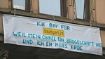Es heißt, das Bahnprojekt Stuttgart 21 schaffe viele Arbeitsplätze. Stimmt – es sorgt, zumindest materiell, sogar für gesicherte Betriebsnachfolgen! Dieses Plakat hängt jedoch nicht in Bahnhofsnähe mit starker Medienpräsenz, sondern in einem zentrumsnahen Wohn- und Geschäftsviertel. In Sachen Eigen-PR muss der künftige Bauunternehmer also noch ein wenig üben.