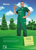Die fünf neuen Motive für die deutschlandweite Nachwuchswerbekampagne unterstreichen dies. Sie sind auf einer Fülle von attraktiven Werbemitteln präsent und erscheinen seit Jahresbeginn bundesweit auch als ganzseitige Anzeigen, beispielsweise in der Jugendzeitschrift „BRAVO“. Potenzielle Auszubildende sollen die Faszination des Berufs Landschaftsgärtner spüren. Sie sollen erkennen, dass es sich lohnt, den grünen Beruf zu ergreifen, den sie mit Stolz und Selbstbewusstsein vertreten können. AuGaLa