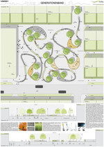 Der Entwurf verwebt die unterschiedlichen Altersgruppen der Benutzer durch ein Generationenband. Verschiedene Bausteine dieses Bandes wurden jeweils so angeordnet, dass Einzelbereiche entstehen sollen, die für mehrere Altersstufen interessant sind. Durch die mäandrierende Form des Bandes entstehen Kontaktzonen, mal enger, mal weiter. Hierdurch soll Miteinander, Nebeneinander und Rückzug gleichzeitig ermöglicht werden.