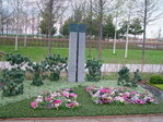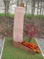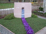 Schlicht und schön wirkt dieses zweistellige Wahlgrab auf den ersten Blick mit dem ungewöhnlichen Grabzeichen (Bild 13). Doch ganz so einfach war die Aufgabe für Schmitz, Kamp-Lintfort, nicht: Auch hier schlug der Frost zu und das Wechselbeet mit der rosa Myosotis musste ausgetauscht werden. Dazu gibt es Antennaria als Bodendecker, Pinus im Rahmen und eine Goldmedaille von der Jury.