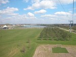 | Riesenblumentöpfe gliedern den Weg | Ein Blick auf den See |
