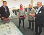 Im Rahmen der Osnabrücker Kontaktstudientage im Oktober 2014 hat der freie Landschaftsarchitekt Martin Heimer aus Hildesheim (2. v. r.) das „Technische Handbuch für Japanische Gartenkunst“ der Fakultät Agrarwissenschaften und Landschaftsarchitektur der Hochschule Osnabrück gestiftet. Der Vorsitzende des Freundeskreises Engelbert Lehmacher (1. v. r.) stiftet die Glasvitrine, in der zukünftig das Handbuch in der Bibliothek am Standort Haste ausgestellt wird. Im Bild außerdem Prof. Dirk Junker (1. v. l.) und die Leiterin der Bibliothek Andrea Quint (2. v. l.).