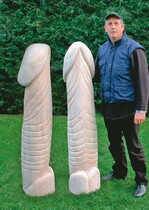 Sie lachen? Wir auch. Diese PR von Holzkünstler Hans Jürgen Pille (rechts), der stolz auf seine „kleinen“ Garten-Accessoires verweist, wollten wir Ihnen nicht vorenthalten. Und wenn Sie eine(n) Kundin/en haben, der/dem so etwas gefällt: Weitere Infos zu den gerade mal 1,60m messenden Phallen gibts unter http://www.pille-sculpture-design.de.