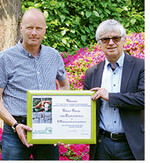 Die Göllner KG aus Hannover feiert das 125. Jubiläum. VGL-Geschäftsführer Harald Mikulla überbrachte die Glückwünsche des VGL und überreichte Geschäftsführer Hans-Peter Knoop eine Urkunde. Gegründet wurde die Göllner KG 1892 in Nienburg von Louis Göllner als Gärtnerei und Samenhandlung. Sohn Max verlegte den Sitz nach Hannover-Kirchrode an den jetzigen Standort und strukturierte den Betrieb in Richtung GaLaBau um. 1965 gehörte die Firma zu den Gründungsmitgliedern des niedersächsischen GaLaBau-Verbands, aus dem dann der VGL Niedersachsen-Bremen hervorging. In diese Zeit fiel auch die Übernahme durch Sohn Claus Göllner, der im Jahr 1983 überraschend verstarb. Hans-Peter Knoop stieg in die Leitung der Göllner KG ein und entwickelte den Betrieb weiter. Bild:VGL