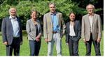 Im Bild das Präsidium der Hochschule Geisenheim. v. l. Prof. Dr. Otmar Löhnertz, Vizepräsident Lehre, Prof. Dr. Annette Reineke, Vizepräsidentin Forschung, Präsident Prof. Dr. Hans Reiner Schultz, Kanzlerin Marion Waldeck, MBA, und der ehemalige Vizepräsident Forschung Prof. Dr. Manfred Großmann. Bild: Hochschule Geisenheim University