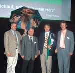 Der Zustand von Grünanlagen beeinflusst die Vermietbarkeit von Wohnungen und stellt damit einen bedeutenden Wettbewerbsfaktor dar. Dies verdeutlichten August Forster (l.) vom Verband Garten-, Landschafts- und Sportplatzbau (VGL) Nordrhein-Westfalen, Prof. Dr. Volker Eichener (2.v.r.) vom InWIS an der Ruhruniversität Bochum sowie Prof. Dr.-Ing. Dietwald Gruehn (r.) von der Technischen Universität Dortmund auf der Fachtagung „Der Wohnungsmarkt in Nordrhein-Westfalen“. Das Bild zeigt die Referenten mit Klaus-Dieter Stallmann, dem Vorsitzenden der Haus & Grund NRW. Bild: privat