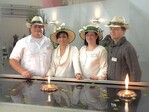 Wie ein erweitertes Wohn-Zimmer im Freien aussehen kann, haben die Experten von Gartengestaltung Brand, Ulm, auf der „Gartenträume 2008“ gezeigt. „Modern Barbeque“ heißt Ihr Stand, mit dem sie den Publikumspreis als beliebtester Messestand gewonnen haben. Im Bild von links: Björn und Cordula Brand, Tanja Schiller und Tilo Ruopp.