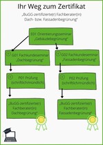 Alle Seminare können grundsätzlich einzeln belegt werden, es kann jedoch auch das Zertifikat des „BuGG-zertifizierte(r) Fachberater(in)“ angestrebt werden. Bei der Kombination eines Orientierungsseminars mit einem Fachkundeseminar und nach bestandener Prüfung kann man sich als „BuGG-zertifizierte(r) Fachberater(in) Dach- bzw. Fassadenbegrünung“ auszeichnen lassen, um für Erstberatungen von Grundlagen zur Gebäudebegrünung vorbereitet zu sein. Ende Dezember und nun im Januar sind die ersten Prüfungen, bestehend aus schriftlichen und mündlichen Teil, durchgeführt worden.