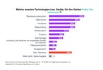 Weitere 19% der befragten nutzen im Garten derzeit noch keine smarten Technologien, haben es aber noch vor. Jeder dritte Befragte steht Smart Gardening hingegen unaufgeschlossen gegenüber: 32% der Deutschen sagen, dass sie smarte Technologien in ihrem Garten weder nutzen noch vorhaben, dies zu tun.