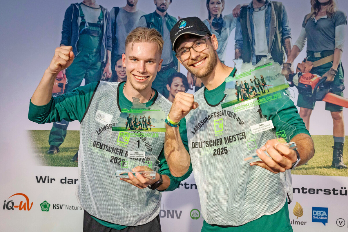 Auf der historischen Mondjahr-Wiese, die vor 40 Jahren im Zuge der ersten Bundesgartenschau in Berlin (1985) entstand, waren die besten Nachwuchs-Landschaftsgärtnerinnen und -Landschaftsgärtner Deutschlands gegeneinander angetreten. Nach zwei spannenden Wettbewerbstagen am 9. und 10. September 2025 in Berlin stand schließlich das Siegerteam fest. Mit ihrem Erfolg qualifizierten sich Marc-Aurel Spalek und Lennard Weitzmann für die Berufsweltmeisterschaft, die WorldSkills 2026, in Shanghai (22. bis 27. September 2026). Dort werden sie Deutschland im Skill „Landscape Gardening“ vertreten.