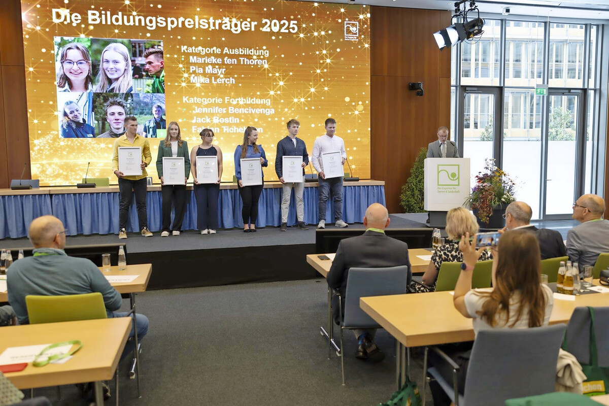 Auf dem 16. Verbandskongress in Berlin ehrte BGL-Vizepräsident Matthias Lösch sechs junge Landschaftsgärtnerinnen und -gärtner mit dem 9. BGL-Bildungspreis. Die jungen Frauen und Männer hatten sich in Aus- oder Fortbildung beziehungsweise durch besonderes Engagement für die Branche ausgezeichnet. Die Namen der Preisträger waren bereits zu Beginn des Jahres bekanntgegeben worden.