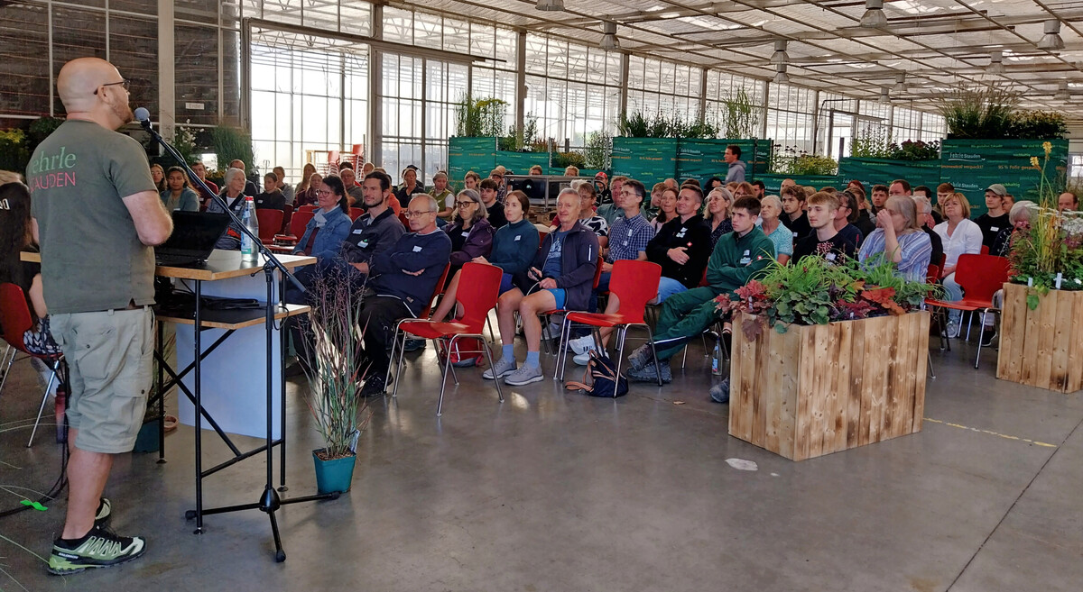 Fehrle Stauden in Schwäbisch Gmünd ist Teil des Stauden Rings und ein großer Lieferant für GaLaBau, Kommunen und Einzelhandel. Zum Infotag am 20. September brachten etliche Kunden ihre Auszubildenden mit, für die es ein eigenes Programm gab. Zu lernen gab es für alle viel.
