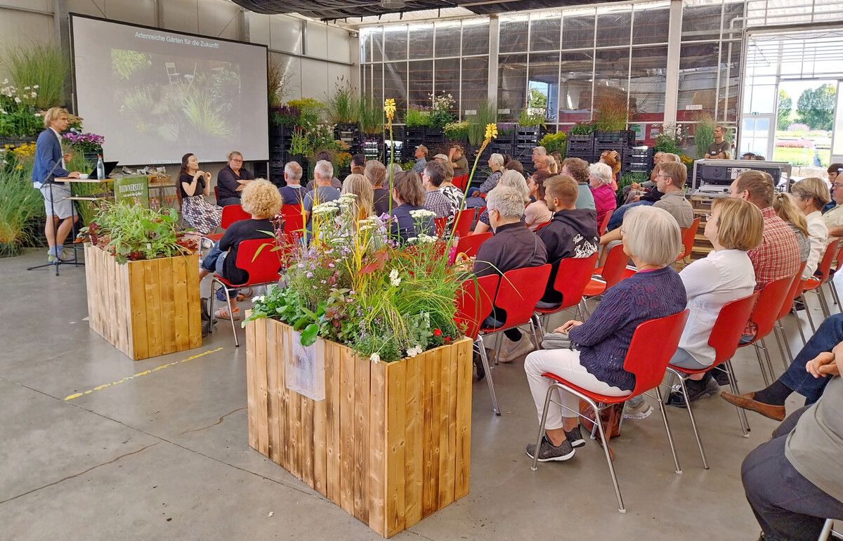 Neben den Vorträgen gab es Info-Stände zu den neuen Verkaufshilfen und Infoelementen für Gartencenter, zur Vorstellung der Bestell-App und des digitalen Beetplaners (der mit der GaLaBau-Innovationsmedaille ausgezeichnet worden war) sowie für Infomaterial und Kataloge.