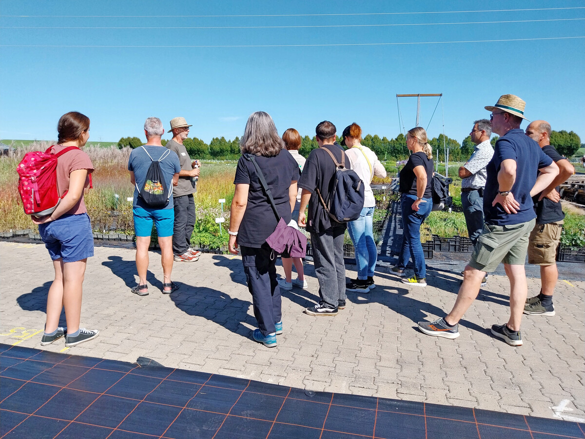 Im Anschluss führten Mitarbeiter und Senior Jakob Hokema die Gäste durch den Staudenbetrieb – eine Augen- und oft eine Insektenweide. Dabei wurde noch einmal darauf hingewiesen, dass Fehrle leere Staudentöpfe von der Baustelle wieder zurücknimmt.
