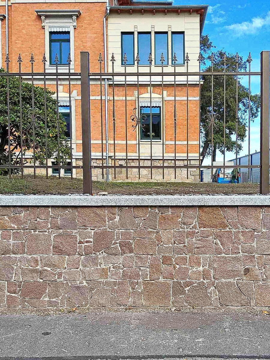 Beim Neubau einer 160 m langen Grundstücksmauer mit vorgeblendeten Mittweidaer Granitplatten stellten die straßenseitigen beengten Bedingungen und die zeitlich limitierte Verkehrsführung eine besondere bauliche Herausforderung dar. Dennoch gelang die Umsetzung mit großer handwerklicher Präzision. Ergänzt wurde die Planung durch eine 3D-Visualisierung und naturschutzkonforme Pflege des alten Baumbestands. Die Jury verleiht einen Sonderpreis für das stimmige Zusammenspiel aus Denkmalschutz, moderner Nutzung und nachhaltiger Gestaltung. Die ressourcenschonende Regenwassernutzung, die hohe Ausführungsqualität, etwa bei den Klinkerflächen, sowie das durchdachte Pflanzkonzept machen die Anlage zu einem gelungenen Beispiel zeitgemäßer Garten- und Landschaftsarchitektur mit Respekt vor der Geschichte.