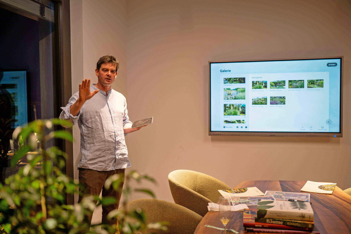 1Wie das funktioniert? Häussermann stellt in jedem der drei Beratungsräume die entsprechende technische Infrastruktur zur Verfügung: Tablets mit KI-unterstütztem Zeichenprogramm, große Monitore für Präsentationen, Zugriff auf das Pflanzensortiment im Online-Shop und die Möglichkeit, die ausgewählten Pflanzen selbst zu etikettieren und direkt in das Angebot aufzunehmen. Die Pflanzenprofis von Häussermann bieten dazu bei Bedarf ergänzende Pflanzenexpertise und Unterstützung. Ein spannendes, aber neues Konzept, das nun auf Gäste wartet: Wer Interesse hat, kann einen der Beratungsräume einfach mal buchen und ausprobieren – ob anfangs direkt mit oder ohne Kunden, so Alex Häussermann.