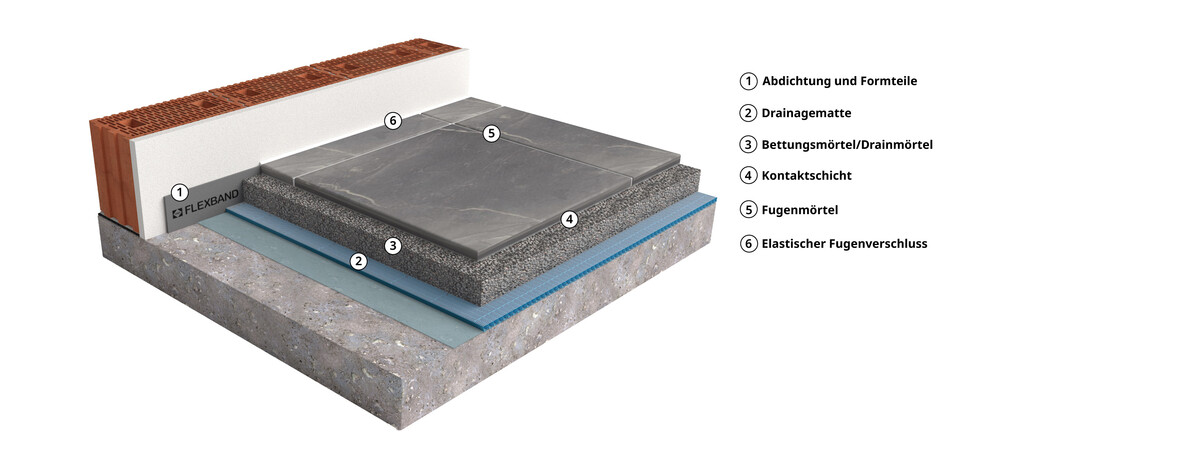 Frostfreie Terrasse – SAKRET Hydraulischer Systemaufbau für keramische Außenbeläge