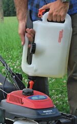 Das Betanken von Heckenschere, Rasenmäher und Co. ist selten ohne Kleckerei zu meistern. Birchmeier Sprühtechnik, Stetten/CH, hat deswegen den Kanister Rapidon 6 entwickelt, der Trichter, Einfüllstutzen und andere Hilfsmittel unnötig macht und ein sauberes Tanken ermöglicht. Der Tankstutzen ist zunächst verschlossen und wird in Position gebracht. Für schwer zugängliche Tanköffnungen kann er bis 45° angewinkelt werden. Per Druckknopf öffnen sich Ventil und Lüftung, sodass blubberfrei betankt werden kann. Der Kanister fasst 6 l Kraftstoff und kann innerhalb von 40 Sekunden gleichmäßig entleert werden. Der Kanister erfüllt alle Richtlinien für Gefahrengüter und hat die UN-Zulassung für 2- und 4-Takt-Benzinmotoren, Alkylatbenzin und Diesel....