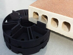 In Kombination mit dem optionalen Zubehör lassen sich weitere Höhen, z.B. durch Ausgleichscheiben oder durch Stapeln der Plattenlager untereinander, preiswert erreichen. Die Unterseite beim Volfilager (Auflagefläche) ist mit Noppen versehen, um einen optimalen Wasserablauf zu gewährleisten. Extra weiche Qualität kann bei Bedarf durch die Fertigung mit oberflächenschonenden gummiertem Kunststoff ermöglicht werden. Diese haben dann einen trittschalldämmenden Effekt. Für Keramikplatten stehen neben den herkömmlichen Fugenkreuzen (z.B. mit Bodenplatte), auch Volfilager mit 2, 3, 4 mm Fugenbreite in 10 mm Fugenhöhe zur Verfügung. Diese können wahlweise mit 2,3,4 oder ohne Fugenstege eingebaut werden. Für Betonplatten werden meistens Volfilager mit 3,4,5,6 mm Fugenbreite und 19 mm Fugenhöhe verarbeitet. Dieses System ermöglicht einen modularen Aufbau der Plattenlager-Konstruktion. So lassen sich alle Volfilager in einen Adapter (Kombiteller) einlegen, der auf den Volfiteller mit 4 mm Fuge passt. Dadurch sind alle gängigen Fugenkombinationen auch mit L-Schenkel für Profilauflagen möglich. Minimale Höhenunterschiede werden mit Ausgleichscheiben in 1 bis 5 mm Stärke ausgeglichen, die sich problemlos vierteln oder teilen lassen. Durch die Fugenstege auf der Oberseite erhält man dauerhaft ein einheitliches Fugenbild. Dabei kann zwischen 2 bis 8 mm Fuge ausgewählt werden. Die Fugen bleiben offen damit das Wasser unter dem Plattenbelag abgeführt werden kann. Die Plattenlager werden auf einen sauberen trockenen und ebenen Untergrund verlegt. Sofern der Untergrund noch in Ordnung ist, können sie auch auf einer bereits gefliesten Oberfläche verlegt werden. Oft empfiehlt es sich, die Plattenlager zusätzlich mit einer Weichgummiplatte oder einer gummierten Ausgleichscheibe zu unterlegen, um einen Schutz für die ggf. darunterliegende Abdichtungsbahn zu erreichen. Volfilager und Volfiteller sind teil- und viertelbar und für begehbare Flächen zur direkten Auflage auf Drainagematten geeignet.
