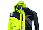 Als oberste Schicht zum Schutz vor Regen, Wind und Kälte stellt Kübler eine Wetterjacke mit vielfältigen Ausstattungsdetails sowie als neue, preisgünstigere Modelle einen Wetterblouson und einen Wetterparka zur Verfügung. Hochwertige Materialien und Verarbeitung sorgen bei allen drei Warnschutzjacken für optimalen Regenschutz und gute Atmungsaktivität gemäß EN 343: 2003 + A1:2007 + AC:2009, Klasse 3/3. Zum hohen Tragekomfort tragen unter anderem der Steh-/Umlegekragen mit Innenkragen aus weichem, anschmiegsamem Material und integrierter Kapuze sowie der verdeckte 2-Wege-Frontreißverschluss mit kombiniertem Kinn- und Bartschoner sowie doppelter Windschutzblende mit zusätzlichen Druckknöpfen bei.