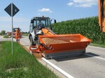 Die neue, große Material-Verteilschaufel „Finliner“ von Optimas ist jetzt im Landkreis Traunstein bei der Bankettinstandhaltung im Einsatz. Sie fasst 1,6 m³ und hat eine größere Ladeöffnung. Dadurch ist sie einfacher von einem Lkw oder Radlader zu füllen. Das bedeutet, dass sich die Arbeitsgeschwindigkeit spürbar erhöhen lässt.