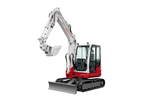 Vom kleinen 1 t-Bagger TB 210 bis zum Flaggschiff, dem 15 t TB 2150 RCV, ist eine für alle Einsatznotwendigkeiten bei Kommune oder Galabau passende Baggerflotte vor Ort. Alle Maschinen sind auf hohem Takeuchi-Standard ausgerüstet, so z. B. mit Schnellwechsler, Drehmotor und Taklock. Auch Ausrüstungsvarianten wie der neben der Kabine montierte RCV Verstellausleger oder Modelle wie die Hüllkreisbagger 138 FR und 250 FR und der 10 t Mobilbagger T 295 W-2 werden gezeigt.