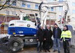 Ein neuer 10 t-Mobilbagger Takeuchi TB 295 W-2 ist in Aachen im Einsatz