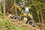 Ganz gleich ob enge, innerstädtische oder weitläufige Baustelle im Landschaftsbau – der Hydradig besticht durch Wendigkeit und Einsatzflexibilität. Dem Fahrer verschafft die Maschine eine unübertroffene Rundumsicht auf das Arbeitsumfeld, eine neue Kabine gewährt Blickfreiheit weit nach oben. So kann der 11-t-Mobilbagger selbst in einem ungewöhnlichen Umfeld – wie in der Forstwirtschaft – mit seinen einzigartigen Leistungsmerkmalen voll auftrumpfen.