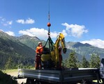 Der Bagger 803 ist der kleinste Bagger im Portfolio von Wacker Neuson und überzeugt durch seine Leistungsstärke bei kompakten Maßen. Diese waren ausschlaggebend für die Aushubarbeiten in rund 2.600 Metern Höhe, da der Bagger nicht wie üblich über eine Straße transportiert werden konnte. Die Lösung war ein Helikopter, der den Bagger an den Einsatzort brachte. Vor dem Flug konnten einzelne Komponenten des Minibaggers 803 von Wacker Neuson zur Gewichtseinsparung mit nur wenigen Handgriffen demontiert werden. Oben angekommen, montierte der Kunde die Teile selbst wieder an und das Freilegen des Rohrs konnte starten.