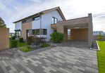 Nimbus präsentiert sich in schlankem, parkettartigem Format mit betonglatter Oberfläche. Drei aufeinander abgestimmte Grautöne vermitteln eine hochwertige Optik und erlauben eine abwechslungsreiche Außengestaltung: Hellgrau, mittelgrau und dunkelgrau bilden die Farbpalette des neuen Gestaltungspflasters. Sie können gemischt, zweifarbig oder uni verlegt werden. Während bei einer Uni-Verlegung ein zeitlos-elegantes Bild entsteht, schafft eine Mischung der Grautöne ein besonders lebendiges Flächendesign. Gleich, wie viele der Graunuancen Verwendung finden – besonders zur Geltung kommt Nimbus im Kontrast mit dem üppigen grün von Rasen oder größeren Stauden- und Gehölzpflanzungen. Die Verlegung erfolgt im Läuferverband. In Kombination mit der Minifase von 2 mm entsteht ein besonders gradliniges und schickes Fugenbild.