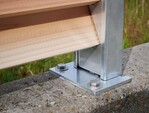 Die geniale Einfachheit von SCHRAUBFREI - es gibt nur ein Pfostentyp - setzt sich bei den Grundplatten fort: Pro Pfosten ist eine Grundplatte erforderlich. Bei Mittelpfosten aus zwei Standardpfosten sind somit zwei Grundplatten notwendig. So lassen sich bei Mittelpfosten mit Grundplatten variable Abstufungen leicht realisieren. Ein besonderer Service für Landschaftsgärtner und Privatgartenbesitzer ist, dass der Hersteller die Pfosten mit Grundplatten auf Wunsch auch vormontiert liefert.