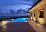 Mit der passenden Beleuchtung kann Outdoor-Poolbereich im eigenen Haus oder in der Hotelanlage auch noch weit nach Einbruch der Dunkelheit genossen werden.