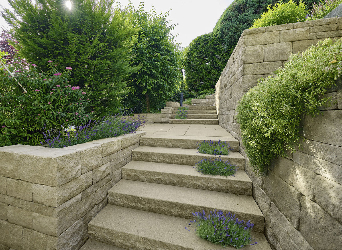 Mit den SANTURO VEGETATIONSSTUFEN erweitert braun-steine sein SANTURO-Programm um eine Treppenlösung, die Konstruktion und Bepflanzung verbindet. In den Stufen befinden sich integrierte Vegetationsflächen, die Pflanzraum schaffen, ohne die Begehbarkeit zu stören.