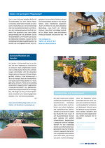 Außenbeläge – überraschend anders / Nutzlaster als Bergsteiger / Antike Optik im Trend / Dielen mit geringem Pflegebedarf / Kunststoffbohlen am Seeufer / Stubbenfräse mit Schwenkpult / Automatisiertes Planieren / Ökologischer Zuschlagstoff / Beeteinfassung in trendigem Rost / Arbeitskleidung in trendigen Farben / Scheibenhacker auf Einachstrailer / Mäher mit Null-Wendekreis / Ökologisch nachhaltiger Parkplatzbau