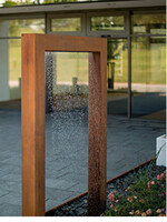Das 2 m hohe Wasserspiel „Aqua Rain" von Gartenmetall eignet sich für windgeschützte Bereiche. Erhältlich ist es in Cortenstahl, geschliffenem Edelstahl und mit Farbbeschichtung. Pro Meter fließt das Wasser aus mehr als 200 Düsen. Das feuerverzinkte Wasserauffangbecken kann in den Boden eingelassen werden. Optional ist eine Unterwasserbeleuchtung.