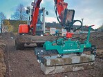 Mit dem Steingreif S400 ist das Positionieren von Blockstufen ohne zusätzlichen Arbeiter zum Führen oder Halten des Greifgeräts möglich – verspricht Hunklinger. Durch die eingebolzte Festanbauweise soll jeder Stein vom Maschinisten alleine passgenau gegriffen und gesetzt werden können. Der Steingreif ermöglicht laut Hersteller auch das flexible Arbeiten an vier gekreuzten Ketten – dies schafft Bewegungsfreiheit für bestimmte Situationen. Hunklinger bietet für das Grundgerät eine Vielzahl spezieller Backen, die mit wenigen Handgriffen austauschbar sind. So können mit demselben Anbaugerät verschiedenste Greifgüter gehoben, bewegt und genau gesetzt werden. Der Klemmbereich erstreckt sich von 5 auf 155cm und optional auf 220cm mit Verlängerung. Überdruck- und Lasthalteventile sollen für Sicherheit auf dem Arbeitsplatz sorgen. Durch die wartungsfreie Lagerung des Grundkörpers und innenliegende Zylinder soll das Gerät über eine hohe Standzeit und lange Lebensdauer verfügen. PR