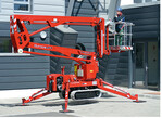 Neu im Rothlehner-Programm ist die 15 m Raupenbühne EuropeLift TR15GT. Mit einer Arbeitshöhe von 15,6 m und einer seitlichen Reichweite von 7,5 m bei 220 kg Korblast deckt dieses kompakte und wendige Gelenk-Teleskopgerät viele Einsatzbereiche ab. Das Kettenfahrwerk ist in Breite und Höhe verstellbar, wodurch das Gerät mit einer minimalen Breite von 0,78 m durch die meisten Türen und Tore passt. Zur Serienausstattung gehört außerdem ein drehbarer Arbeitskorb mit beweglichem Korbarm. Der TR15GT eignet sich aufgrund seines geringen Gewichts von nur 2 100 kg sehr gut für Böden mit geringer Belastung. Dem EuropeLift steht ein Hybrid-Antrieb zur Verfügung. Neben einem emissionsfreien 230-V-Netzantrieb ist auch ein Benzin- oder Dieselmotor wählbar.