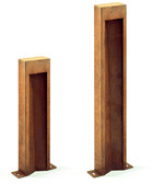 Die Lampen der Baureihe „Como" von Gartenmetall punkten mit ihrer geradlinigen Form und runden Kanten, die Baureihe „Arezzo" erkennt man an einem typischen Knick. Vorinstalliert sind LED-Leuchten mit warmweißem Licht. Die Außenleuchten werden entweder auf festem Untergrund festgeschraubt oder mit einem Erdspieß im Boden verankert. Die Modelle beider Serien gibt es in den Höhen 300, 600 und 900 mm. Das Lampengehäuse besteht standardmäßig aus Cortenstahl.