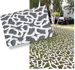 Das Scada-Rasenornament designte die niederländische Stadtplanerin Fien Decker. Egal wie der Stein beim Verlegen gedreht wird, es entsteht immer ein spielerisches Flächenornament. Die 12 cm starken Ornamentsteine (30 × 30 × 12 cm) können mit Splitt, Kiessand oder einem Gemisch mit Humus gefüllt werden, um sie zu begrünen. Rund 30 % der Fläche sind versickerungsfähig.