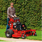 Stehrasenmäher bieten einen besseren Überblick als Aufsitzmäher. Die bessere Federung der Plattform und die stehende Haltung schonen den Körper. Durch Auf- und Absteigen kann der Bediener zwischen unterschiedlichen Tätigkeiten schneller variieren. Der GrandStand von Toro lässt sich durch das Hochklappen der Stehplattform zu einem handgeführten Mäher verwandeln.