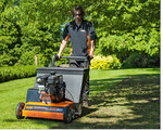 Die selbstfahrende Nachsaatmaschine DZC600 von Eliet mit einer Arbeitsbreite von 60 cm kann Saatgut mit größter Präzision einbringen. Besonders bei problematischen Teilbereichen auf vielgenutzten Grün- und Sportflächen führt die regelmäßige Anwendung laut Hersteller zu einem ausgezeichneten Ergebnis.