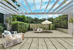 Der Belag gefällt nicht mehr, wäre aber nur aufwendig zu entfernen? Der unterfränkische Anbieter Renofloor hat für diesen Zweck einen sogenannten Steinteppich entwickelt – 50 × 50 cm große Platten aus kunstharzverklebten Kieseln, die sich nach Angaben des Herstellers problemlos und schwimmend (ohne Bindung an den Altbelag) verlegen lassen. Speziell für den Außenbereich wurden die „Drain-floor-Module" mit integriertem Drainagesystem entwickelt.