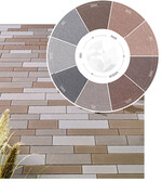 Die Zeiten, in denen Betonpflastersteine ein monotones „Mausgrau" aufwiesen, sind längst vorbei. Die Antwort heißt „Atlantis". So nennt sich das neue Pflastersystem von FCN Nüdling, bei dem sich der Kunde aus neun aufeinander abgestimmten Einzelfarben seine eigenen Farbtonvariationen zusammenstellen kann. Steht ein mediterranes Lebensgefühl im Mittelpunkt, sind natürliche, warme Farbtöne die richtige Wahl. Wird eher ein „cooles" Ambiente angestrebt, eröffnen sich mit dezenten Grautönen zeitgemäße Gestaltungsspielräume. Zusätzlich stehen zwei Größensets zur Wahl: S (6-Stein-System) und M (4-Stein-System). Die Steine sind 8 cm dick und 30 bis 80 cm lang.
