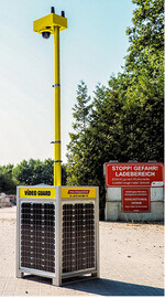Zur Sicherung von Ein- und Ausfahrten, Lager- und Baustelleneinrichtungsflächen gibt es das neue Kamerasystem „Video Guard One" mit einem Blickwinkel von 100° und einem Radius von bis zu 30 m. Es bietet eine datenschutzkonforme, punktgenaue und permanente Sicherung von bis zu 750 m 2 in HD-Qualität bei Tag und Nacht. Das System ist bis zu 90 Tage netzstromunabhängig.