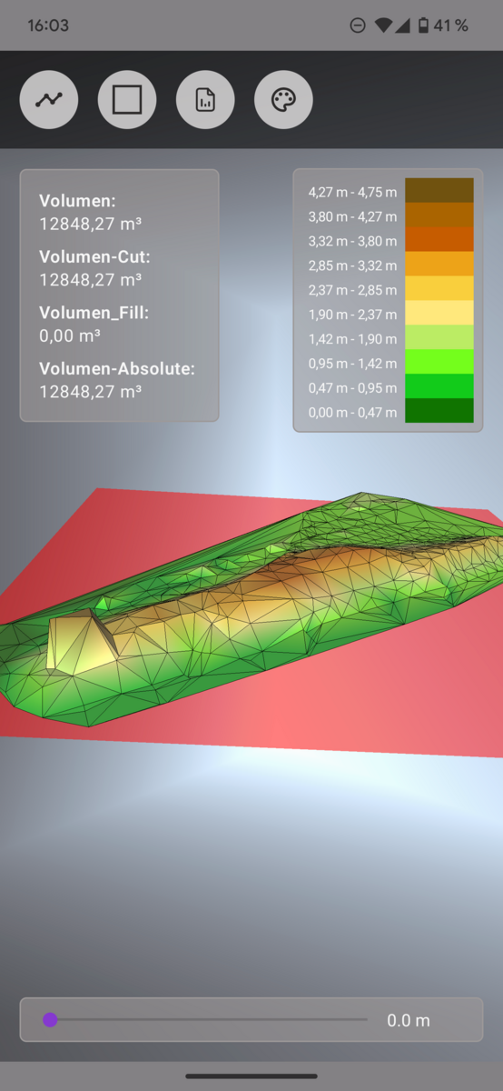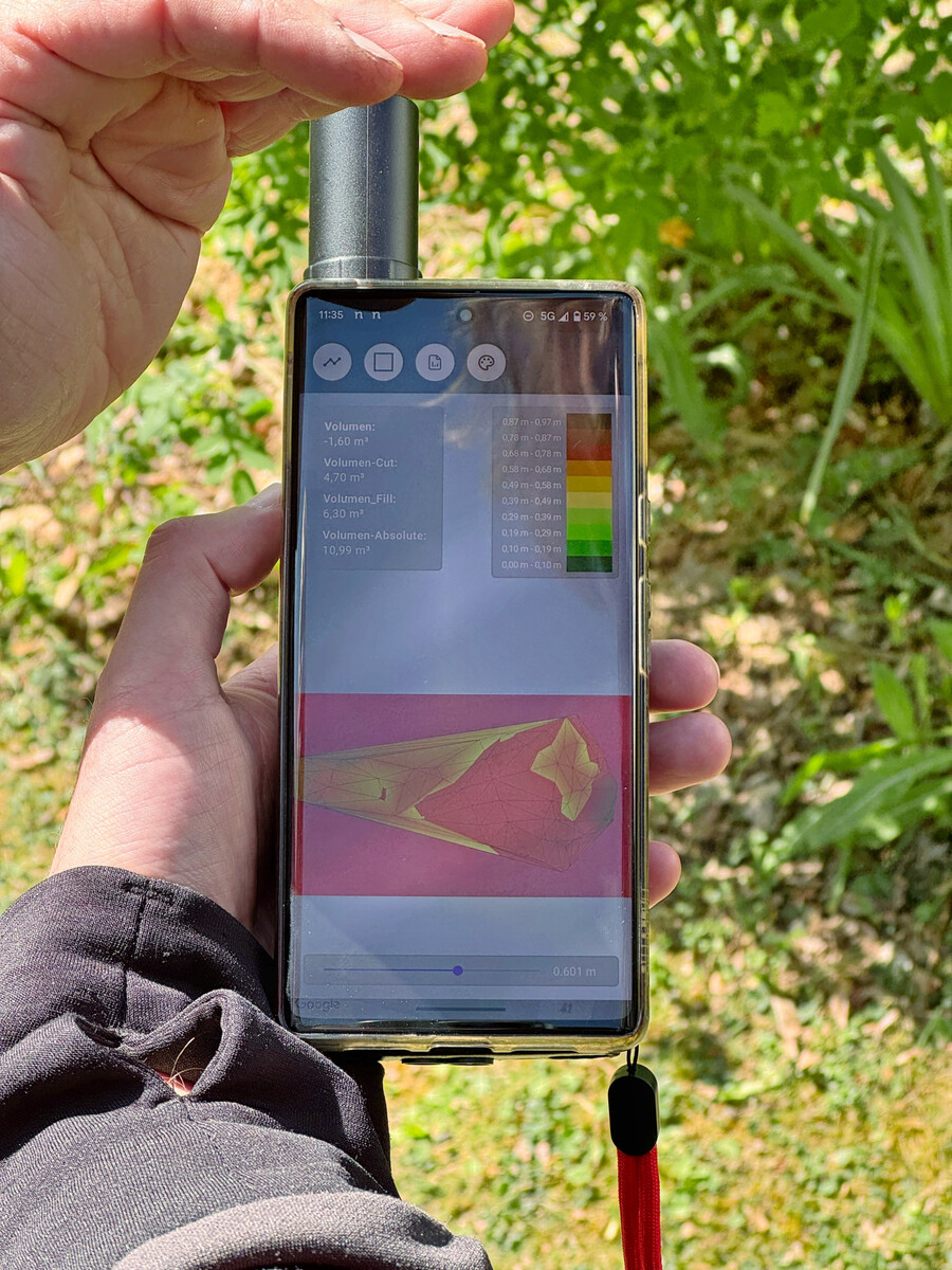 Bei einem anderen Projekt musste Joschi das Volumen von Abraum aus einem Graben bestimmen. Statt klassisch zu schätzen oder per Hand zu messen, nutzte das Team die AR-Funktion von 3tag. Einfach den Hügel abstecken, mit der App ein-, zweimal herumgehen, fertig. Das berechnete Volumen in m³ wird sofort in einem PDF-Report inklusive Screenshot festgehalten – ein Nachweis für Auftraggeber, ohne Pi-mal-Daumen-Werte oder Zettelwirtschaft.