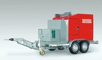 Wacker Neuson präsentiert mit dem E 700M erstmals ein Flächenheizgerät. Das Gerät kann ein bis zu 400m2 großes Areal auftauen und vor Frost schützen. Der dieselbetriebene Heizer erwärmt ein Wasser-Glykol-Gemisch auf über 80°C. Eine Pumpe transportiert dieses durch einen 700m langen Schlauch, der auf die zu wärmende Fläche gelegt wird. Eine Isolierplane hält die Wärme.