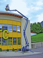 Von Hematec, Vertragspartner des italienischen Konzerns CTE, kommt eine neue, extrem kompakte Raupenarbeitsbühne mit Transportabmessungen von 4,5m Länge, 0,8m Breite und 2m Höhe. Mit diesen Traummaßen und geringem Gewicht in Verbindung mit weißen Ketten tritt die CTE CS 170 sogar sanft auf empfindlichen Böden in Innenräumen auf. In Gebäuden oder lärm- und luftsensiblen Umgebungen kann die Maschine dank Netzstromantrieb zudem abgasfrei und fast geräuschlos arbeiten. Optional kann die Arbeitsbühne auch mit hydraulisch verbreiterbarem Fahrwerk und Fernbedienung für den Geländeeinsatz flott gemacht werden. Der optional erhältliche schwenkbare Arbeitskorb erweitert ihren hohen Arbeitsbereich von 17m Höhe sowie 7m seitlicher Reichweite zusätzlich und macht das Gerät noch flexibler. Ihren Antrieb erledigt ein 10kW starker Honda-Benzinmotor mit Hydraulikpumpe. Alternativ gibt es auch einen lärmgekapselten Diesel.